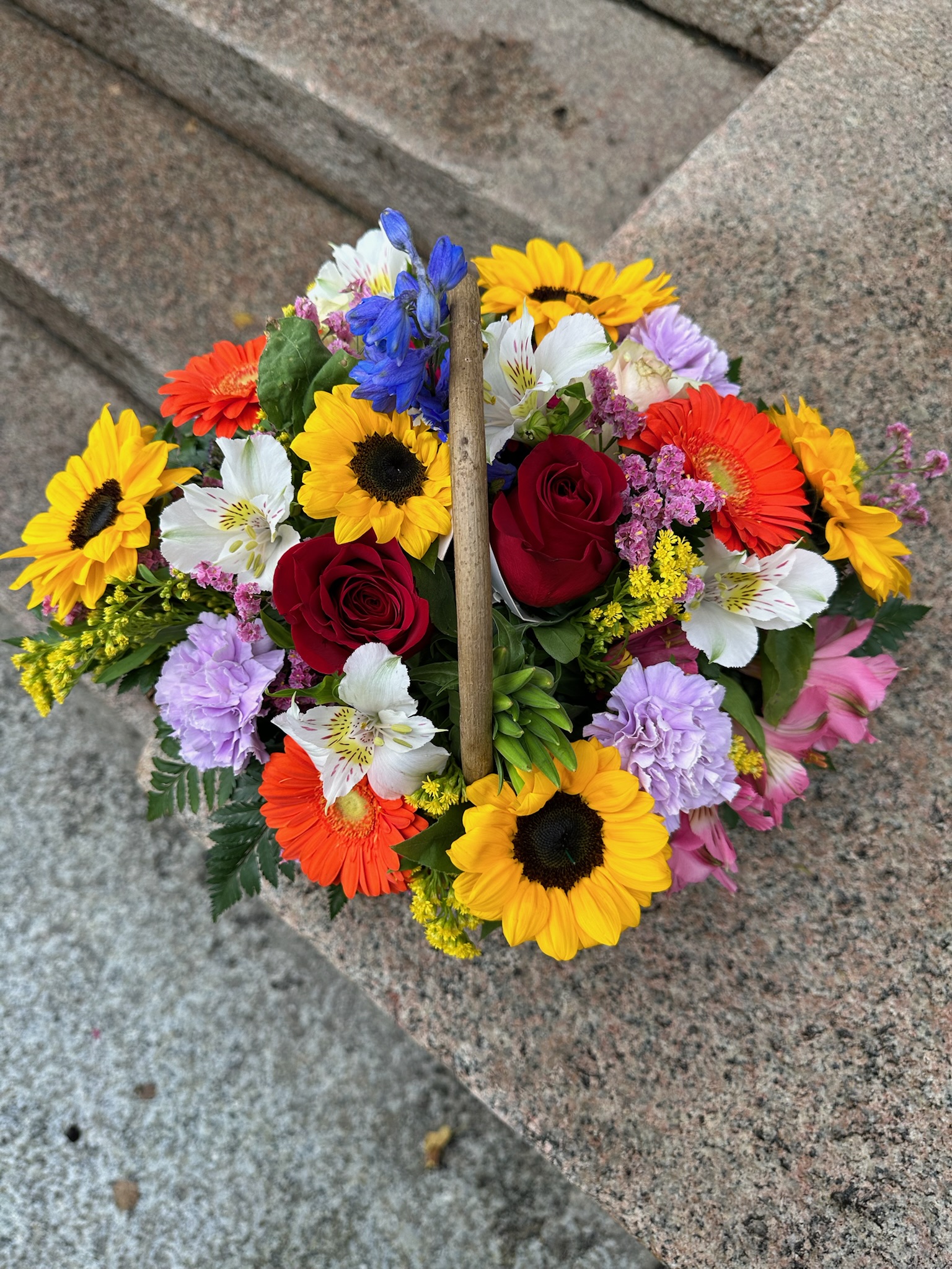 Questa composizione è un vero spettacolo per gli occhi, un insieme armonioso dove ogni fiore ha il suo spazio per brillare. Presentato in un classico cesto intrecciato, questo arrangiamento è pensato per chi vuole stupire con un regalo generoso, dinamico e profondamente vitale.