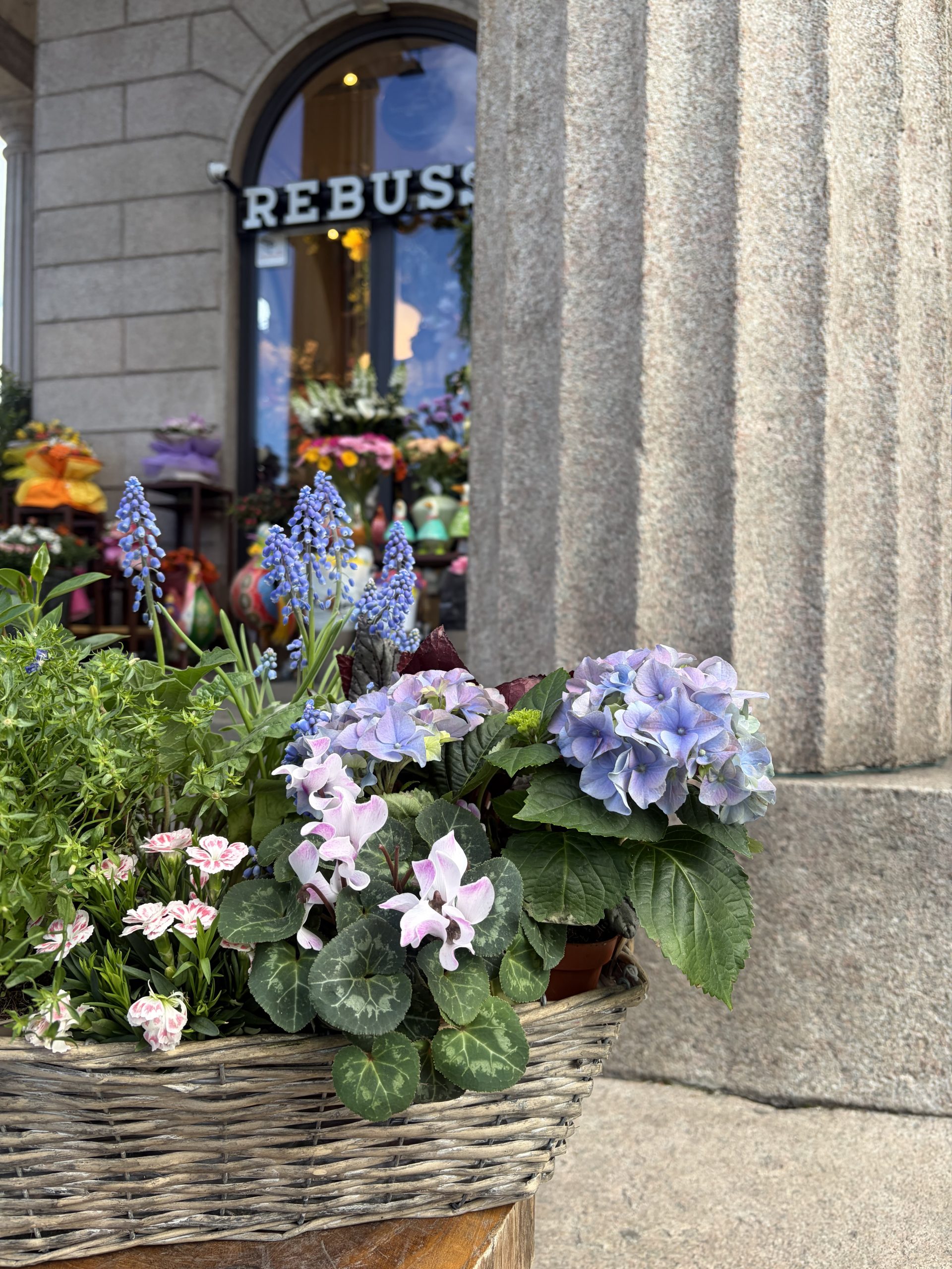 Questa splendida composizione primaverile è un vero inno alla rinascita della natura, presentata in un raffinato cesto rettangolare di vimini intrecciato sui toni del grigio decapé. Al suo interno, un’armoniosa varietà di piante fiorite e verdi crea un paesaggio in miniatura fresco e gioioso: spiccano le eleganti ortensie blu, le delicate campanule e i piccoli ciclamini bianchi, accompagnati da muscari e altre piantine. Annaffia regolarmente con moderazione, bagnando il terriccio e non le foglie, per mantenere le piante fiorite a lungo e goderne la bellezza per settimane.