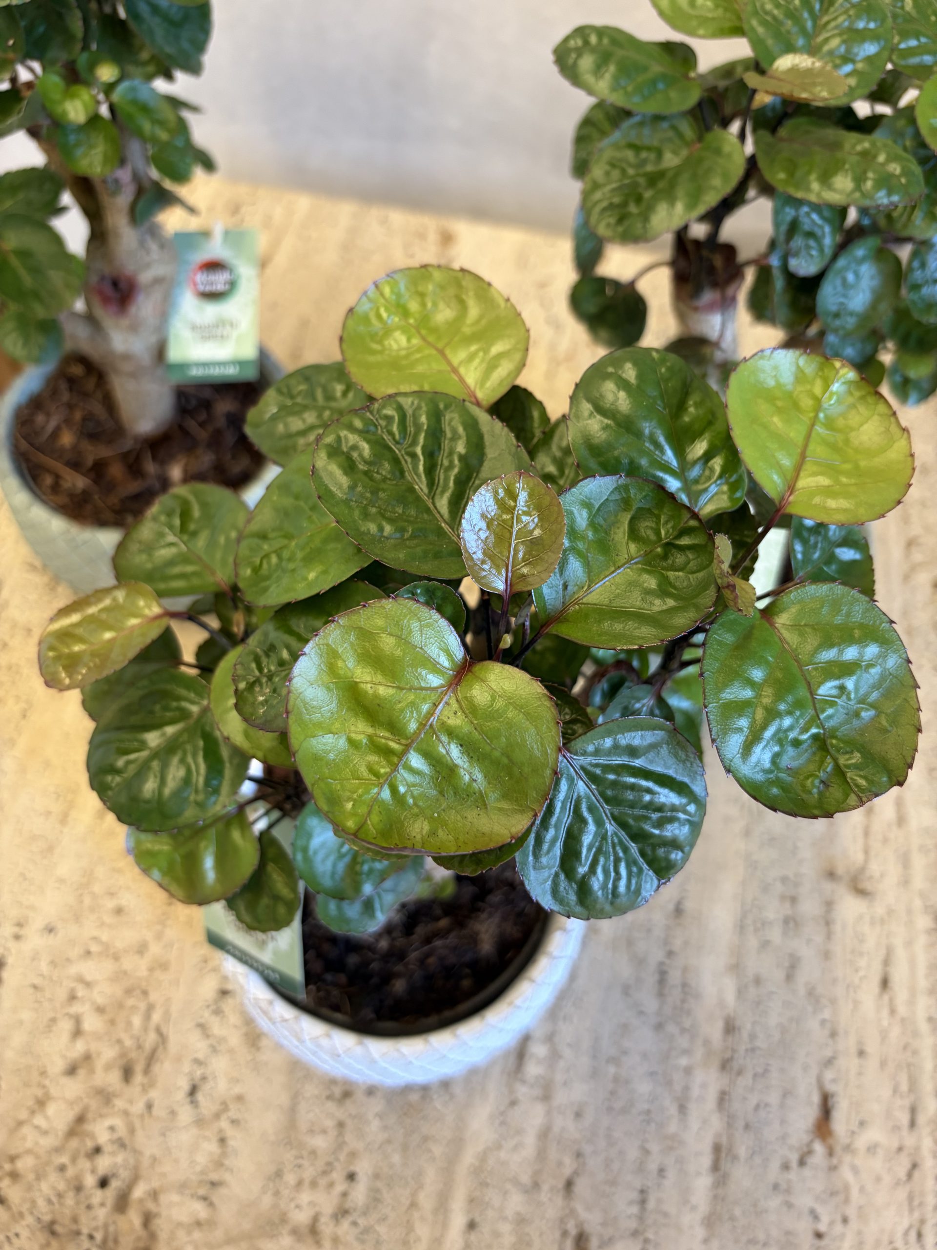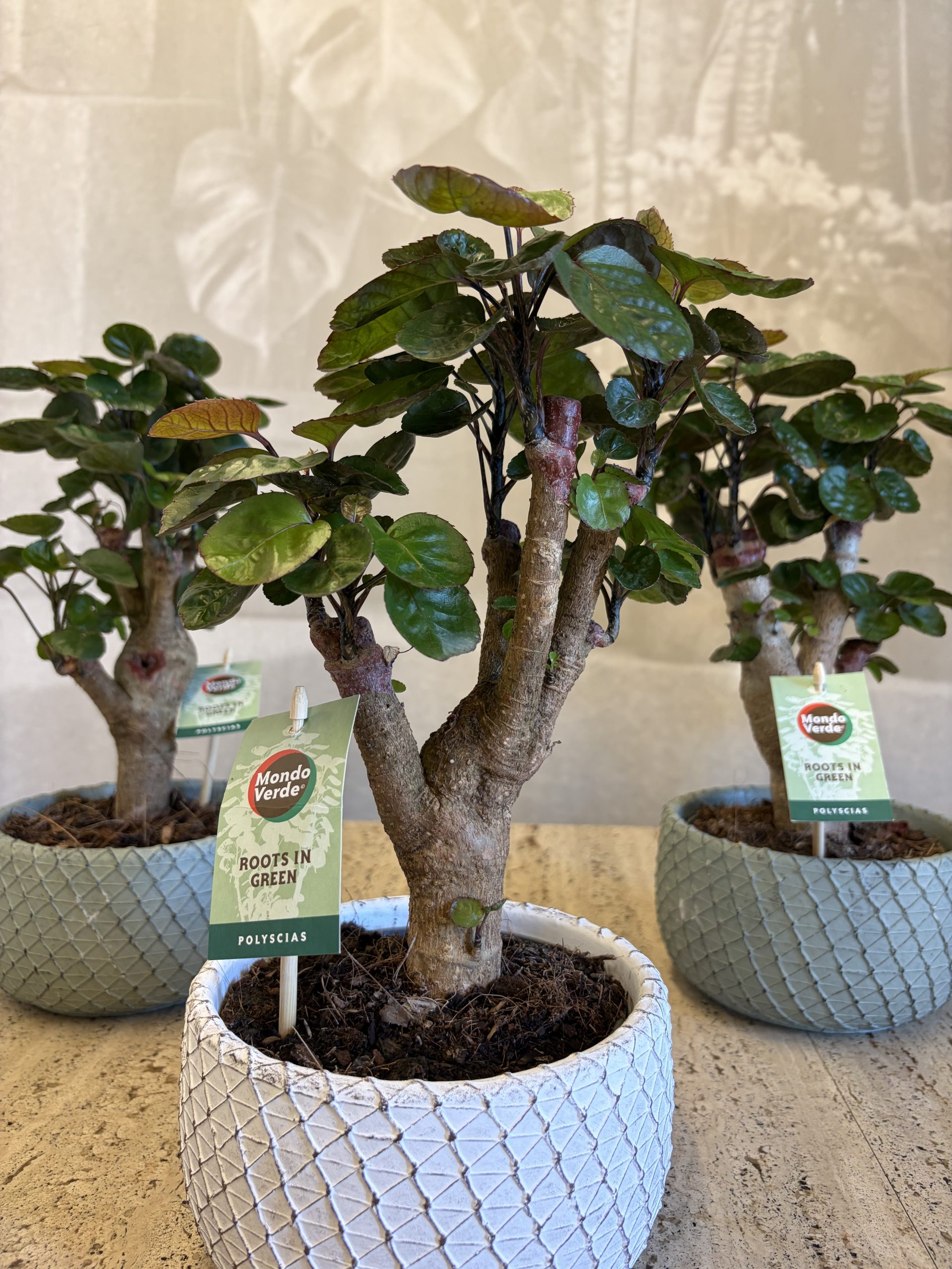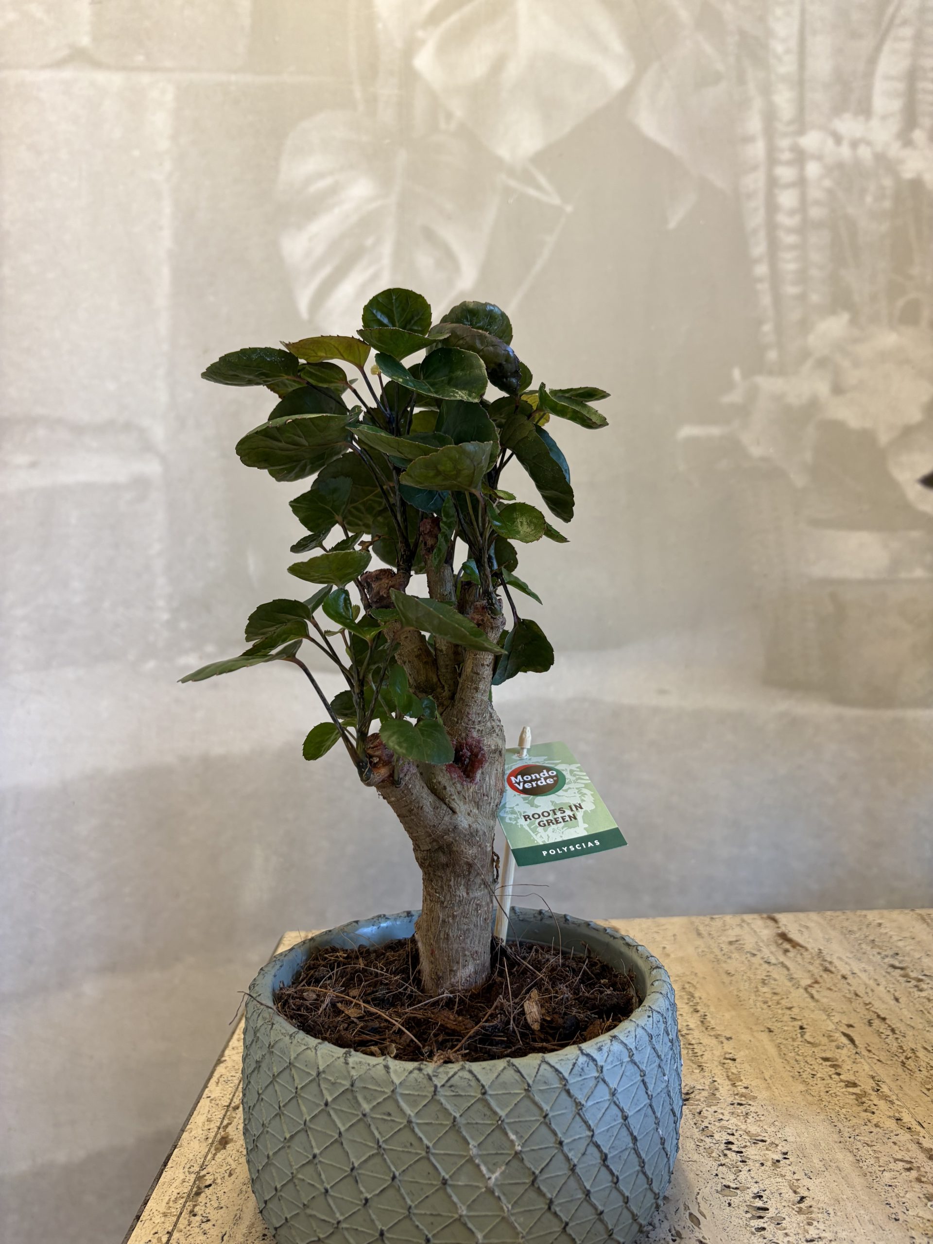 Questa affascinante selezione di Polyscias in versione mini-alberello è la scelta ideale per chi desidera un tocco di natura dallo stile zen e ricercato. Presentata in caratteristici vasi di ceramica con una texture a rete in rilievo, questa pianta si distingue per il suo fusto robusto che sorregge una chioma densa di foglioline tondeggianti e lucide, ricordando la forma di un antico bonsai. La Polyscias è una pianta d’appartamento che ama la stabilità e la luce diffusa, perfetta per dare personalità a scrivanie, mensole o tavolini. Per curarla al meglio, mantieni il terreno leggermente umido ma evita i ristagni d’acqua nel sottovaso. Essendo di origine tropicale, gradisce ambienti caldi e teme le correnti d’aria fredda.